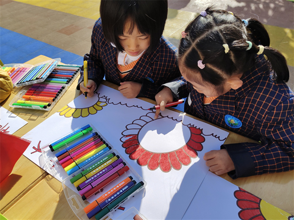 “国旗”“花朵”“太空人……”活动现场,小朋友们纷纷拿起画笔,用稚嫩的小手描绘着对美好生活的向往。“纸筒火箭”“红色手印”“红星手表……”不同的班级,不同的材料,孩子们用童真和想象创作出了一幅幅主题鲜明、充满童真的绘画、手工作品,一颗颗稚嫩的童心饱含着对党的颂扬,对祖国的热爱,对幸福生活的感恩,以实际行动庆祝党的二十大胜利召开。