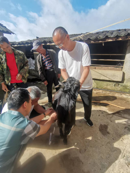 工作组一行人深入五龙乡脚家箐村委会、大同街道阿梅者、牛速,竹基镇本寨、斗坞等村,调查了解当地养殖户黑山羊养殖现状,通过体尺测量、称重、外貌特征、生长情况等进行性能测定,切实掌握该品种遗传性能。
