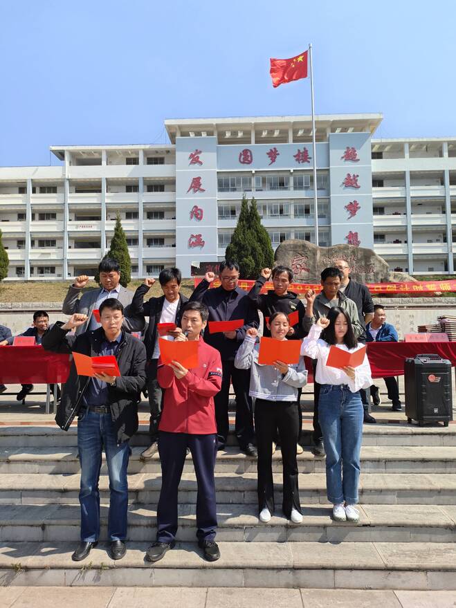 3月10日,丹凤中学全体初三年级师生和部分家长代表齐聚小广场,举行2023年中考百日倒计时誓师大会。