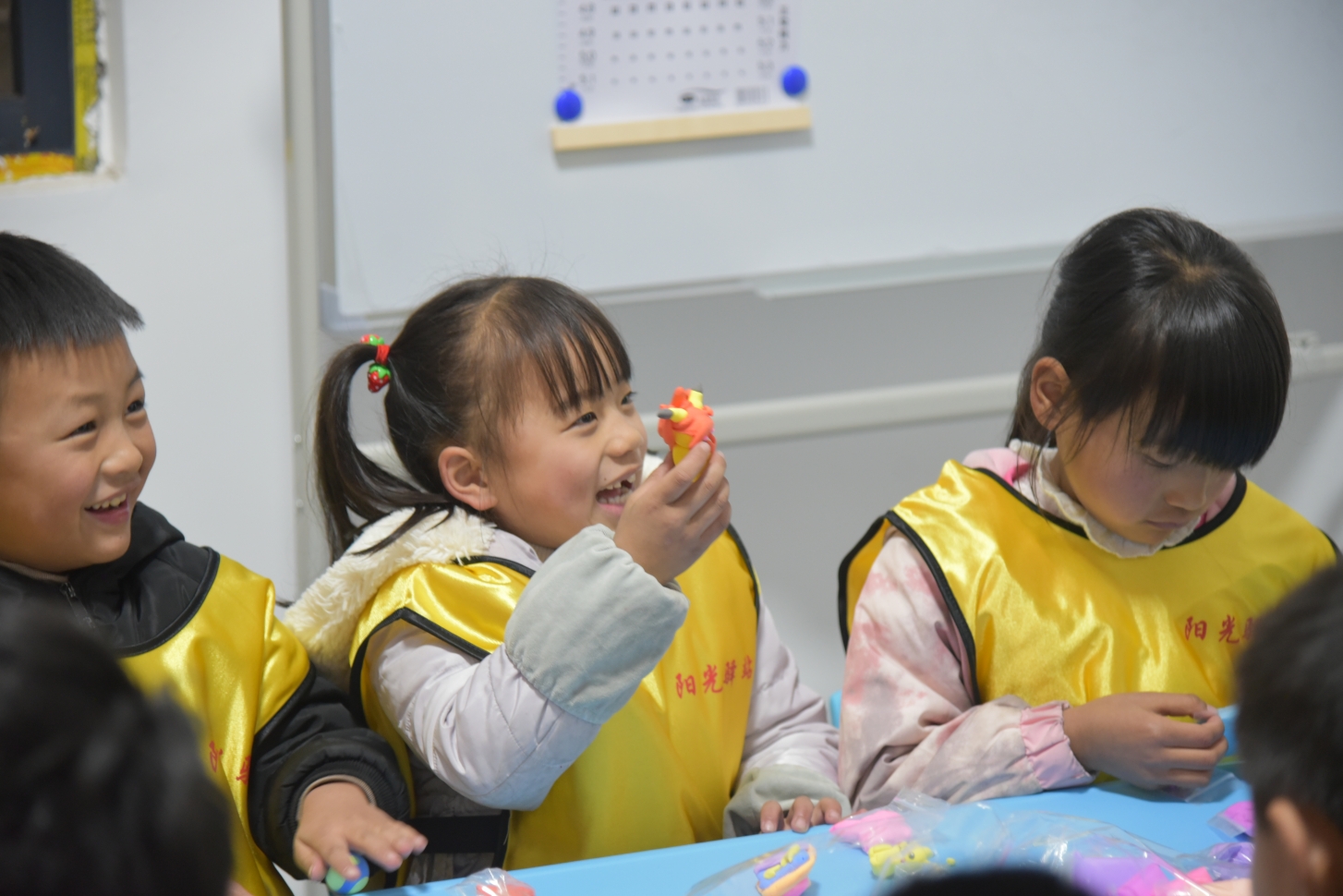 现场邀请瓦葵中心完小一、二年级的45位小朋友利用学校课后辅导时间来到“阳光驿站”参加“‘阳光驿站里,童梦正启航’——一起来了解社区内的儿童乐园”主题活动,在老师和社区工作人员的陪伴带领下,大家一起玩热身游戏、参观活动场所、画画、捏黏土,现场充满了欢声笑语。通过实地参观和亲身体验,让社区儿童深入了解“阳光驿站”所提供的各项服务功能,有效提升了该项目的认知度。