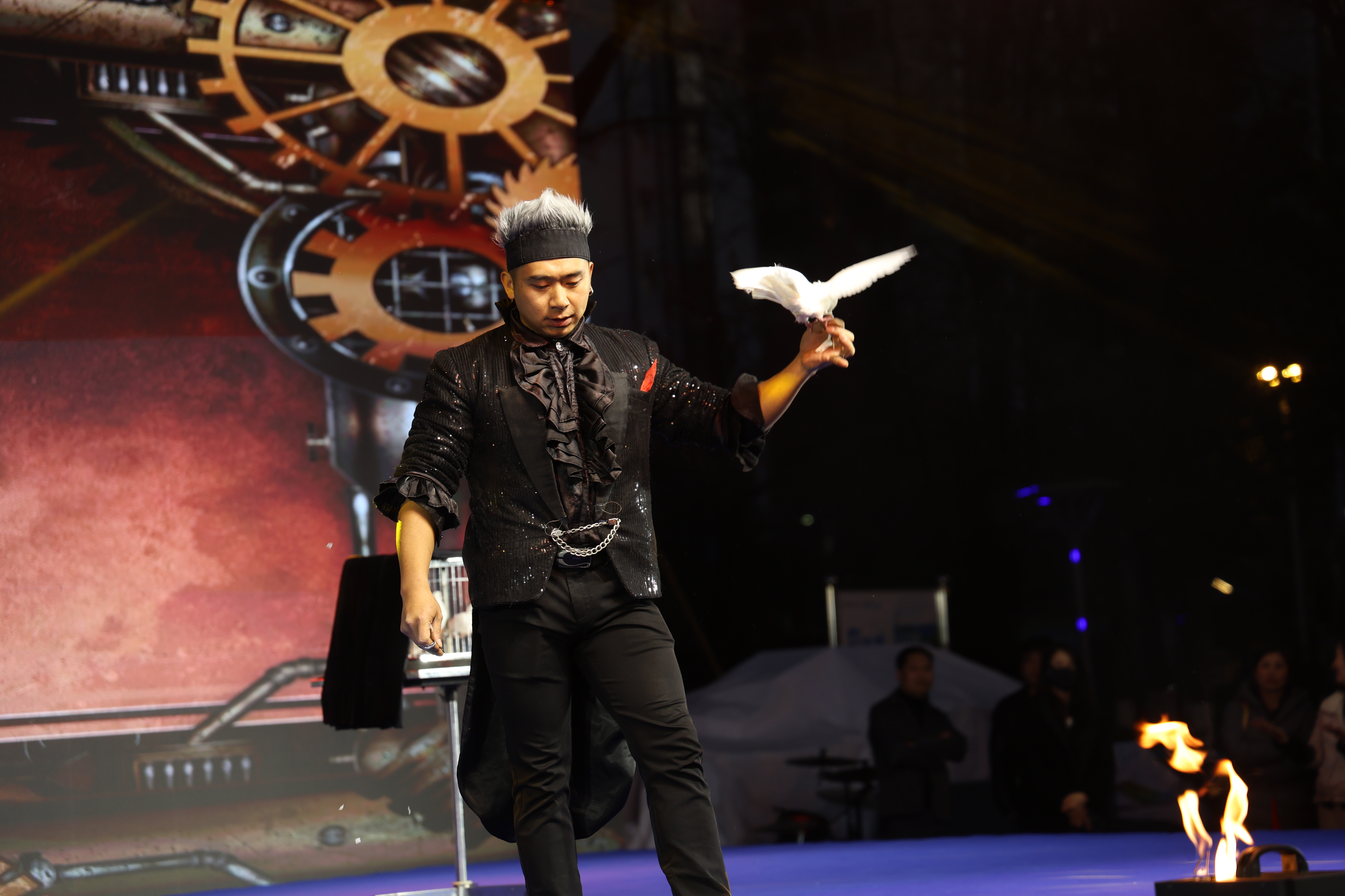 华灯初上,舞台与星辉交映。晚会在开场魔术中拉开序幕,魔术师以巧手妙思将观众带入梦幻的新年氛围。随后,《爱我中华》《向往》《扬鞭催马运粮忙》等节目轮番上演,传统民乐与现代艺术交融,既有激情动感的街舞《神猴降世》、爵士舞《爵士风暴》,也有彰显地方特色的《碗舞》《梦里水乡》等表演。《京剧娃》、器乐《钟》、歌曲《爱永在》等节目,一次次将现场气氛推向高潮。整场晚会共呈现16个精品节目,最终在绚烂的跨年烟花秀中圆满落幕。漫天焰火照亮夜空,也点亮了人们对新一年的美好期盼。
