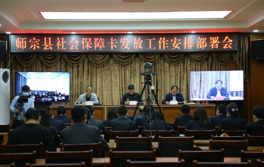 5月23日下午,师宗县召开社会保障卡发放工作安排部署视频会议,县委常委、副县长张立兵在师宗主会场出席会议并讲话。