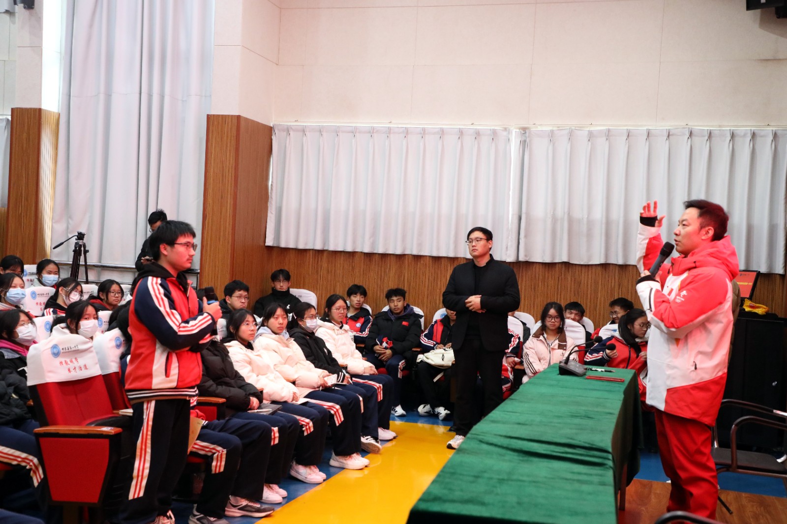 在随后举行的见面会上,郭伟阳从自身的经历切入,讲述自己21年体育生涯的坚守与荣光。与同学们分享了训练中遇到的瓶颈、失败后的沮丧以及如何一次次从挫折中站起的经历,用亲身诠释了“坚持”的深刻含义。