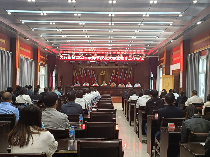 9月9日上午,大同街道召开2022年教师节庆祝大会暨教育工作会议,街道在家班子成员,中心学校、中学、完全小学负责人,受表彰集体负责人及部分教师,各村(社)党总支书记参加会议。