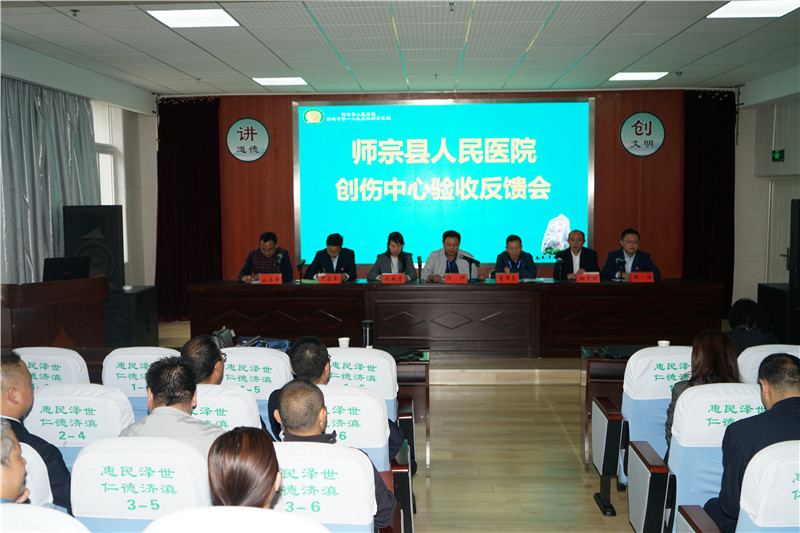 在验收工作中会上,县卫健局主要负责人向专家验收组介绍了师宗县卫生健康基本情况,县人民医院主要负责人就创伤中心创建工作情况做汇报。之后专家组分为文档查看组、现场模拟演练评估组深入科室,通过详细督查,对设施与标识、创伤中心相关流程图、急诊科、外科诊室等进行现场指导评审。随后,专家组对县人民医院创伤中心建设中存在的问题进行了集中反馈,对县人民医院创伤中心建设提出了持续改进意见。