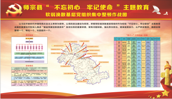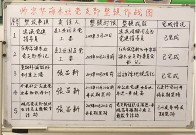 师宗县坚持高标准、高质量,把整顿软弱涣散基层党组织作为检验“不忘初心、牢记使命”主题教育成果的重要标尺和深入推进“基层党建创新提质年”各项任务的重要举措。实施“挂图作战”,探索建立定期分析研判制度,有效确保全县集中整顿的12个基层党组织完成预期目标。