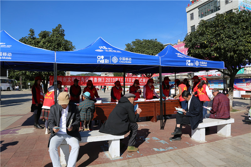 11月1日上午,师宗县委宣传部、中国移动通信集团云南有限公司师宗分公司、师宗县融媒体中心、共青团师宗县委、师宗县漾月街道在县城通玄公园联合开展《曲靖市文明行为促进条例》宣传活动。