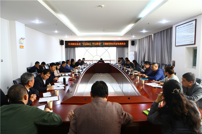 11月6日,中共师宗县委召开“不忘初心、牢记使命”主题教育征求意见座谈会,听取县直机关、企事业单位、人民团体主要负责人代表,县级五机关办公室有关负责人,部分基层党员代表,市、县“两代表一委员”,驻村扶贫第一书记等对县委书记龚加武,县委副书记韩寅燕,县驻村工作队总队长李拓幸,县委常委、县委办主任张立兵4位同志的意见建议,进一步查找差距、整改落实,扎实推进主题教育深入开展。