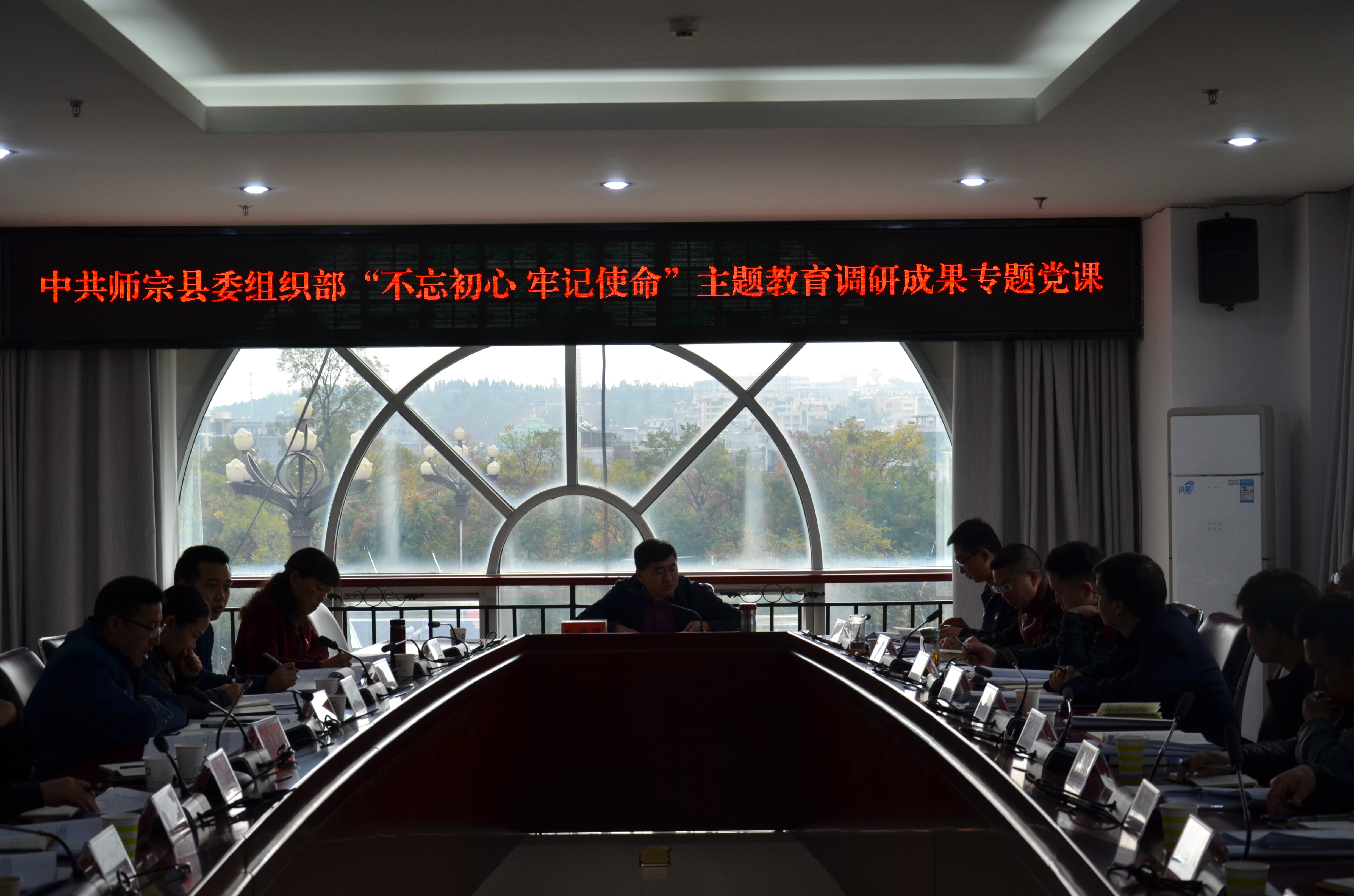 11月15日上午,按照县委“不忘初心、牢记使命”主题教育安排,师宗县委组织部开展“不忘初心、牢记使命”主题教育专题党课。县委常委、县委组织部部长孙竹祥同志为县委组织部全体干部职工讲授《培养一支高素质忠诚干净担当的高素质干部队伍在全县营造风清气正的干事创业环境》专题党课。