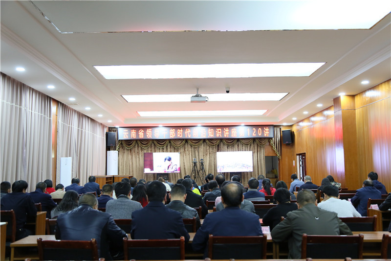 蒋琢,曹继洪等县领导及有关单位负责人在师宗分会场收听收看讲座。
