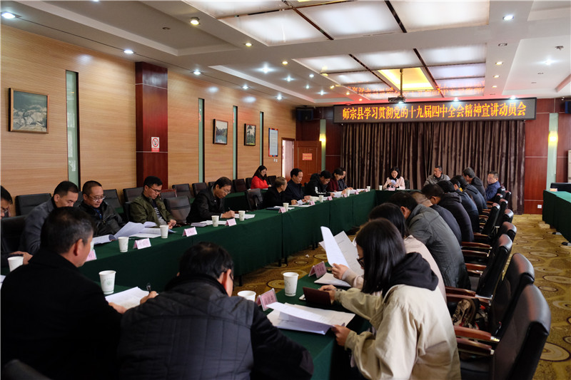 11月27日,师宗县召开学习贯彻党的十九届四中全会精神宣讲动员会,就师宗县开展党的十九届四中全会精神宣讲工作进行安排部署。县委副书记韩寅燕主持会议并作动员讲话。